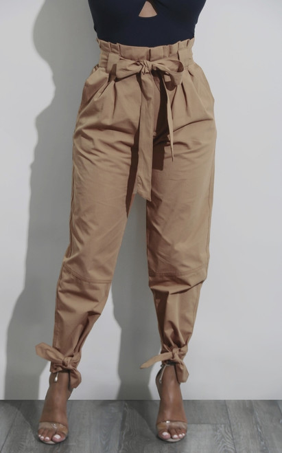 Casual High Waist Ankle Length Pants Women Elastic Tie Trousers With Pockets Running Sport Tights Trousers
